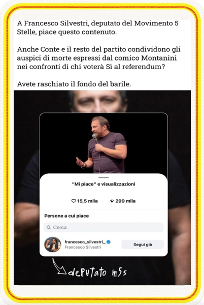 Dal palco ai social: auguri di morte per chi voterà SÌ, nella bufera il like del deputato Silvestri
