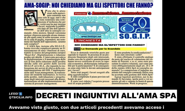 Avevamo visto giusto, con i due articoli precedenti [AMA-SOGIP: NOI CHIEDIAMO, MA GLI ISPETTORI CHE FANNO? ] e [IL TERZO MISTERO DELL’AMA]. Avevamo acceso i riflettori sulla gestione allegra della società partecipata del Comune di Paternò, in particolare sulla perdita del finanziamento previsto dal programma europeo “React-Eu”, su digitalizazione e riduzione perdite reti idriche e … Leggi tutto AMA PATERNÒ, TANTO VA LA GATTA AL LARDO CHE CI LASCIA LO ZAMPINO