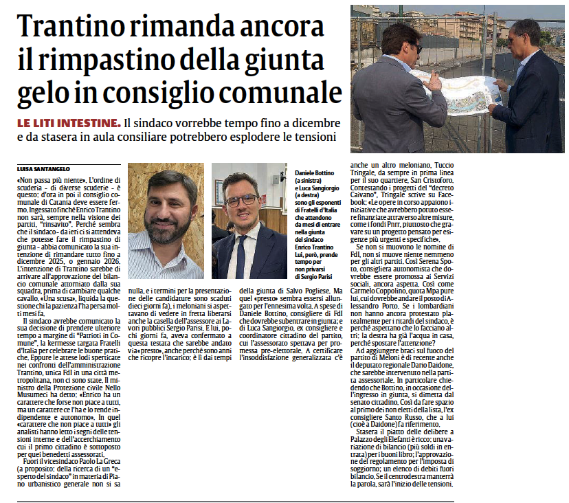 Leggiamo l’articolo pubblicato oggi da La Sicilia su ciò che sta accadendo dentro il palazzo: