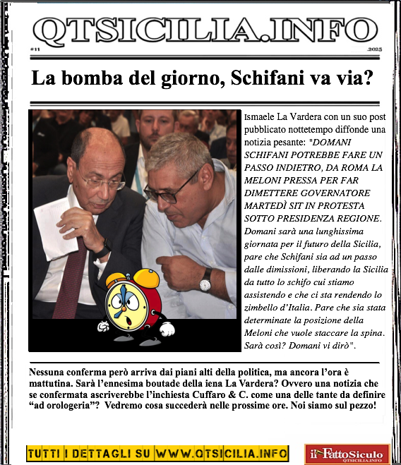 E mentre Ismaele La Vardera a notte fonda lancia la bomba, flash pubblicato sopra, di un possibile passo indietro di Renato Schifani che circolava già per i corridoi del palazzo, mentre il governatore si trovava a Bruxelles, a Palermo si teneva un vertice di maggioranza a Palazzo dei Normanni, al quale Schifani non ha partecipato, dove si è discusso, tra l’altro, sulle dimissioni di Schifani e di tornare al voto. Nel corso della riunione, durata quattro ore, sono stati esaminati i principali argomenti sui quali i partiti di maggioranza hanno lavorato nelle ultime settimane, elaborando proposte concrete in materia di sviluppo, crescita economica, politiche del personale, interventi sociali e tutela dell’ambiente, previste nella finanziaria, che è all’ordine del giorno. Le presenze di Luca Sbardella commissario di FdI in Sicilia, degli alfieri di Raffaele Lombardo, un gran viavai frenetico tra le stanze dei gruppi parlamentari, i rumors, accreditavano però, le sensazioni che l’ipotesi di dimissioni di Renato Schifani, che apparivano tutt’altro che peregrine, ma non certamente sicure.