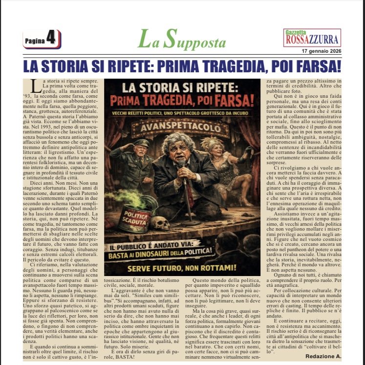 La storia si ripete sempre. La prima volta come tragedia, alla maniera del ‘93, la seconda come farsa, come oggi. E oggi siamo abbondantemente nella farsa, quella peggiore, stanca, grottesca, autoreferenziale. A Paternò questa storia l’abbiamo già vista. Eccome se l’abbiamo vista. Nel 1993, nel pieno di un oscurantismo politico che lasciò la città senza bussola e senza anticorpi, si affacciò un fenomeno che oggi potremmo definire antipolitica ante litteram: il ligrestismo. Un’esperienza che non fu affatto una parentesi folkloristica, ma un decennio intero di dominio, capace di segnare in profondità il tessuto civile e istituzionale della città.