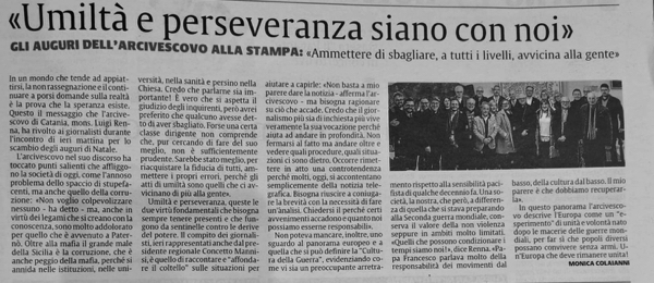C’è un momento, ogni anno, in cui le parole contano più dei gesti rituali. L’incontro del vescovo di Catania con la stampa, in occasione degli auguri di Natale, è stato uno di quei momenti. Perché non si è trattato di una liturgia di circostanza, ma di un discorso che ha messo a disagio chi preferisce il silenzio, l’abitudine, la mistificazione della verità, che non va ricercata nelle accuse diffuse, “tanto semu tutti i stissi”. Non è questa la via. Chi sbaglia, chi ha sbagliato, deve pagare. Favorire la “catarsi” con i fatti, mettendosi di lato, è un obbligo. Molti lo hanno fatto. Perseverare è diabolico.