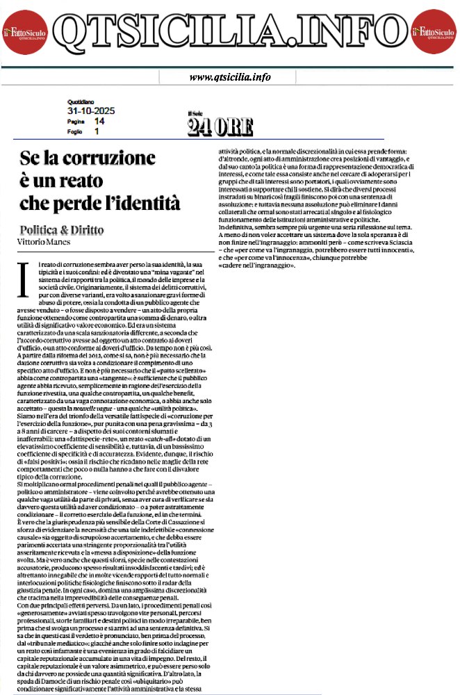 «Il reato di corruzione sembra aver perso la sua identità, la sua