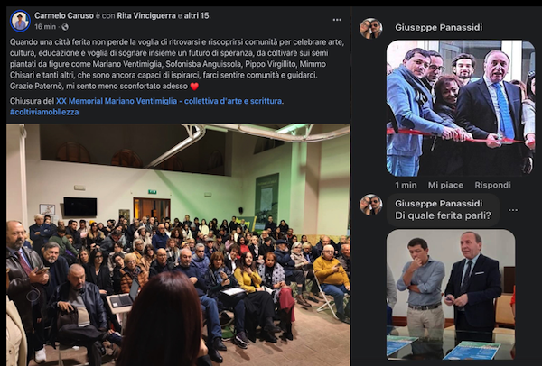 Sconvolto da come alcune persone, che fino alla vigilia dello scioglimento del Comune per infiltrazioni mafiose erano pappa e ciccia con l’ex sindaco, presenti insieme a lui in eventi, iniziative, progetti, foto, sorrisi e pacche sulle spalle , oggi improvvisamente si comportano come se nulla fosse mai accaduto. [per non parlare qui del regalo fatto da Naso dell’ex Macello al Presidio Partecipativo per “favorire” in modo dubbio questa associazione – ndr]