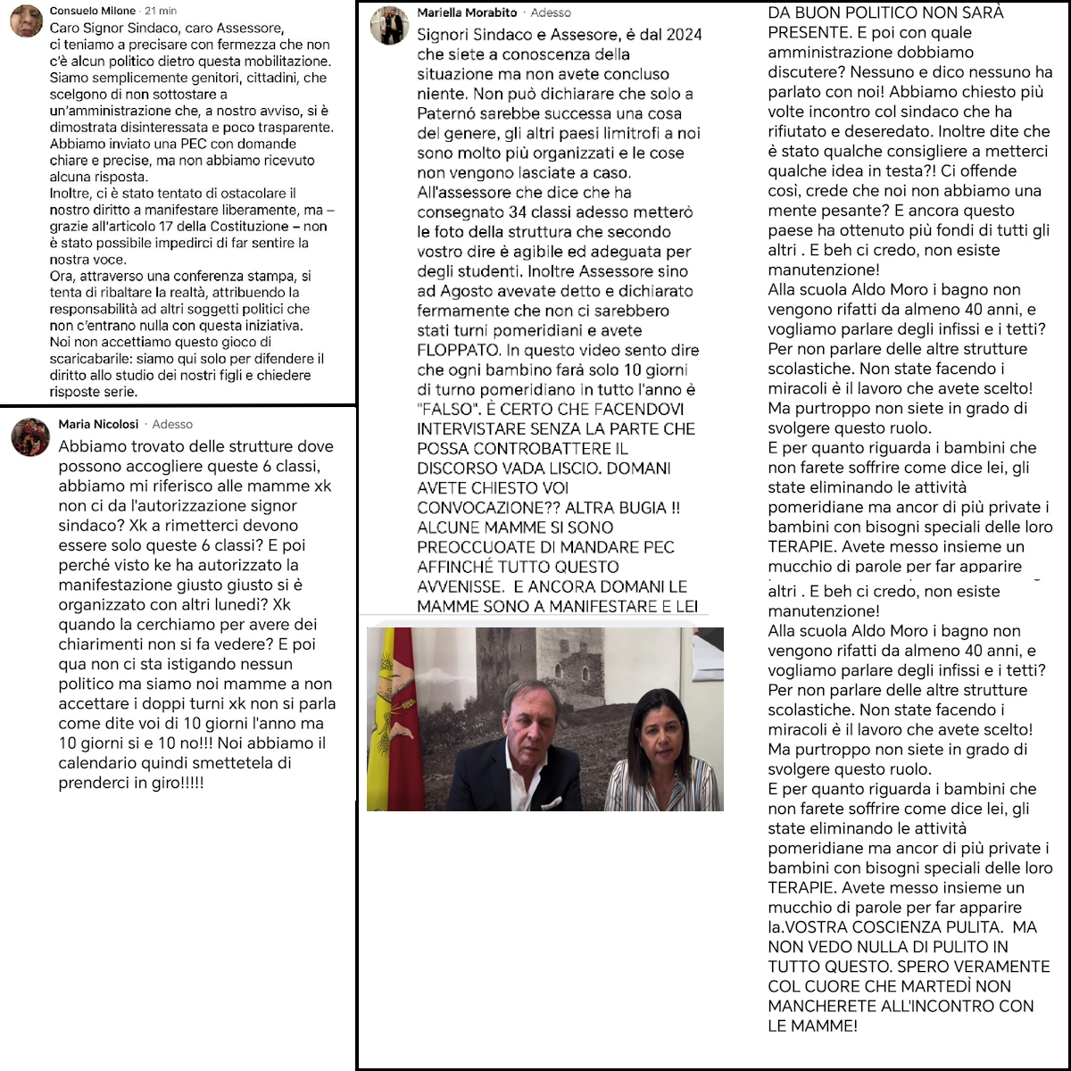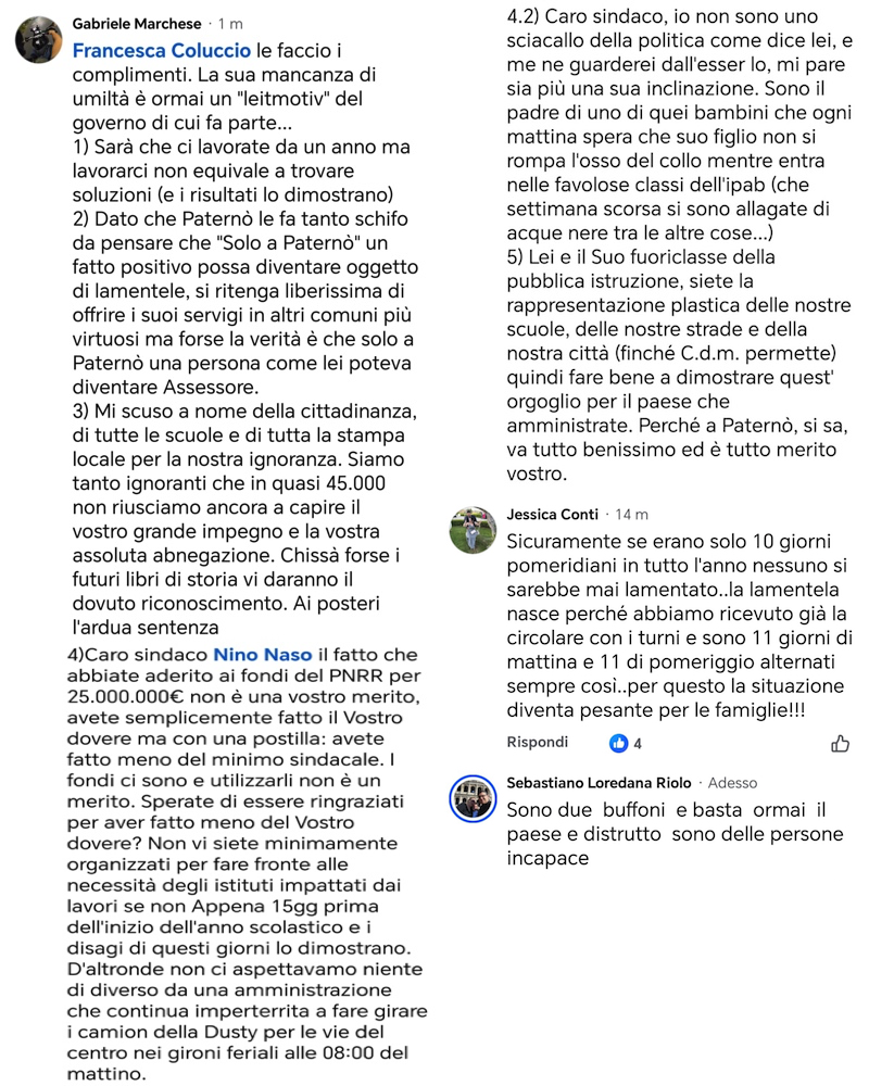 Proprio così. In una tranquilla domenica paternese si consacra il momento in cui la politica ancora una volta smette di essere confronto e diventa cabaret. Ed è quello in cui un sindaco e un assessore, a pochi minuti dalla pubblicazione di un proprio video, corrono a cancellare tutti i commenti critici.
