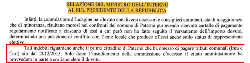Eppure, mentre la macchina comunale si accanisce sul cittadino qualunque, un fatto politicamente e moralmente esplosivo che emerge dal decreto di scioglimento per mafia, il sindaco risulterebbe non in regola con il pagamento dei tributi comunali a partire dagli anni 2012/2013. Sembra incredibile, ma noi ci crediamo.